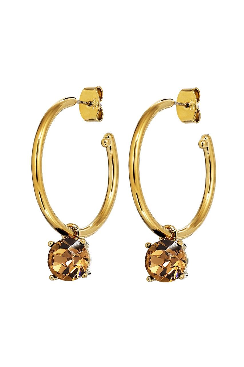 Smykkefeber har fundet Dyrberg Kern Diega ørering Farve: Guld Onesize Dame fra Dyrberg Kern hos Dyrberg/Kern i kategorien ørering. DIEGA – en cool og trendy stor hoop ørenring på 26 mm i diameter. Vedhænget er en aftagelig 8 mm store facetslebet krystal sat i en let fatning. Her vist i skinnende guldfinish og chokoladebrune sten. SPinkel i design og lige skøn til hverdag og fest. Tot