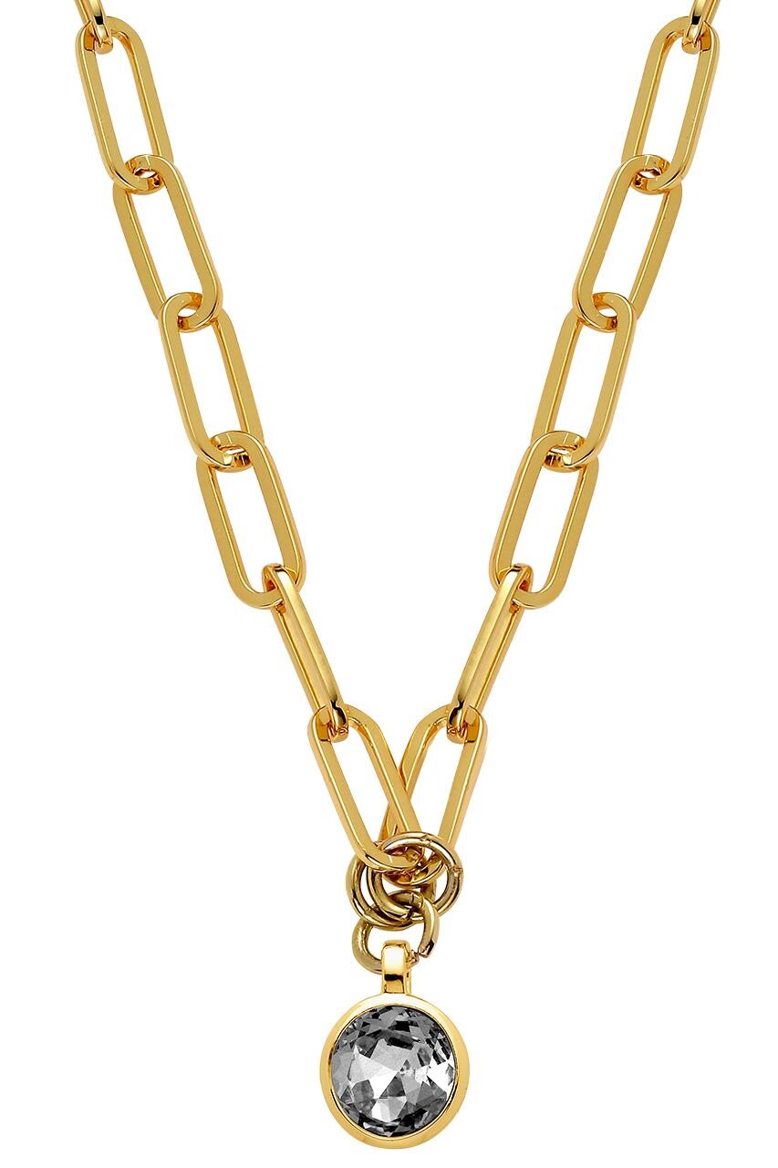 Smykkefeber har fundet Dyrberg Kern Lisanna Halskæde Farve: Guld Onesize Dame fra Dyrberg Kern hos Dyrberg/Kern i kategorien Halskæde. LISANNA – er en fed og markant kort halskæde designet i poleret stål med eet eneste bevægeligt vedhæng, isat en stor funklende krystalsten i en boks fatning. Kæden er lige fed til en Sweatshirt som en aftenkjole og absolut i særklasse. Kæden er ca 42 cm l