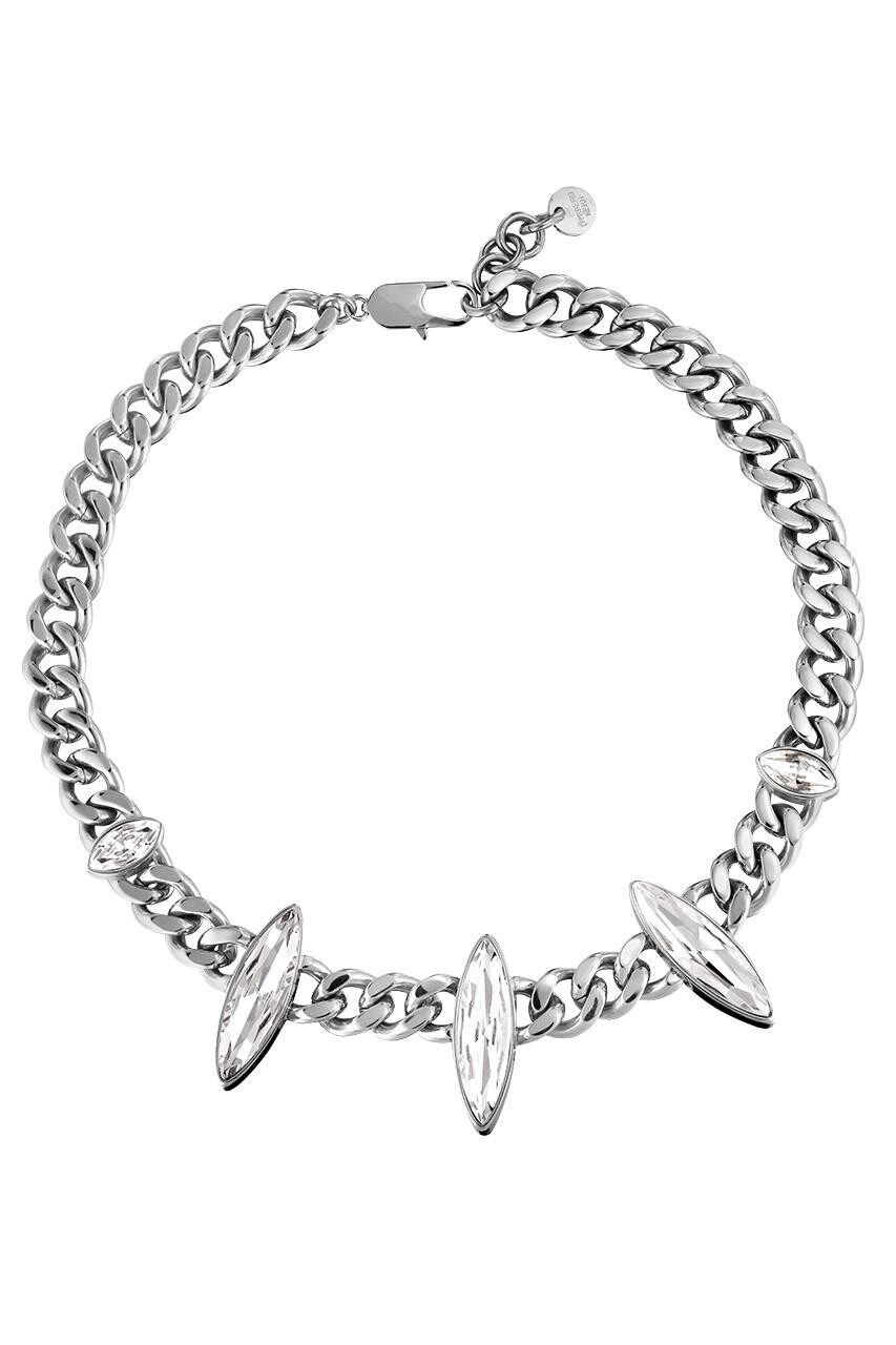 Smykkefeber har fundet Dyrberg Kern Opsica Halskæde Farve: Sølv Onesize Dame fra Dyrberg Kern hos Dyrberg/Kern i kategorien Halskæde. OPSICA – er en fed, kort halskæde, der ligger smukt i halsrundingen med sine 42 cm længde + 5 cm. forlængerkæde. Super opsigts vækkende og samtidigt meget chic. Kæden er designet i poleret stål, og de fem store og mindre navette formede krystaller er mege