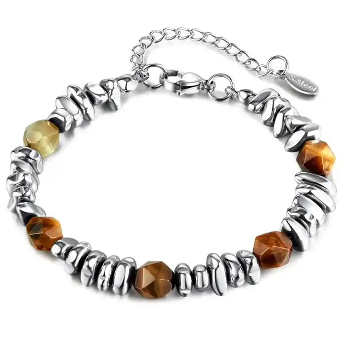 Smykkefeber har fundet Tigereye Og Stålperler fra hos Marjoe.dk i kategorien Armbånd. Oplev ‘Tigereye og Stålperler’ armbåndet.Designet til den moderne mand, dette armbånd kombinerer robuste stålperler med den mystiske charme af facetteret tigereye.Justerbar længde fra 17 til 21 cm sikrer perfekt pasform.En klassisk genfortolkning af masku