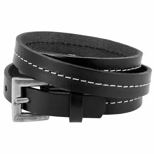 Smykkefeber har fundet Triple Stitz Læderarmbånd Sort fra hos Marjoe.dk i kategorien Armbånd. Sort kraftig læder med stiklinger og metalspænde.1,3 cm bredt og skal vikles 3 gange om håndled.Str. 17 til 20cmÂ