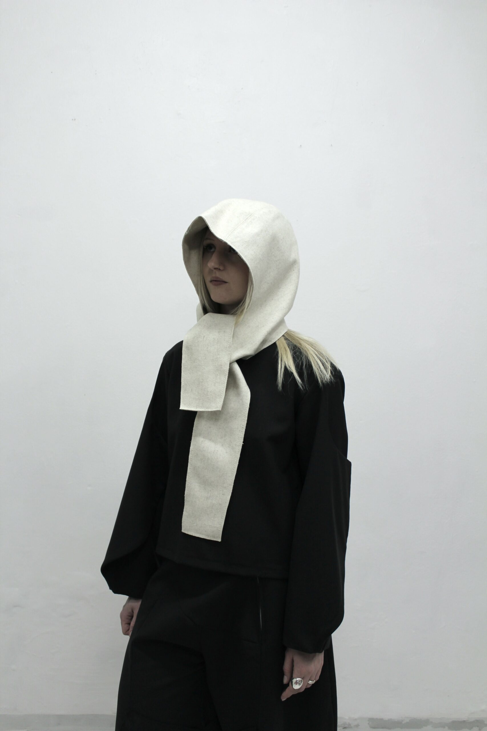 Smykkefeber har fundet Vint Hood fra Silke Astrid hos Studio Stars i kategorien . Hood with wide ties made from deadstock wool. The double-layered material provides structure and shape.The model is 168 cm tall.Size: One sizeMeasurements:Tie length: 50 cm